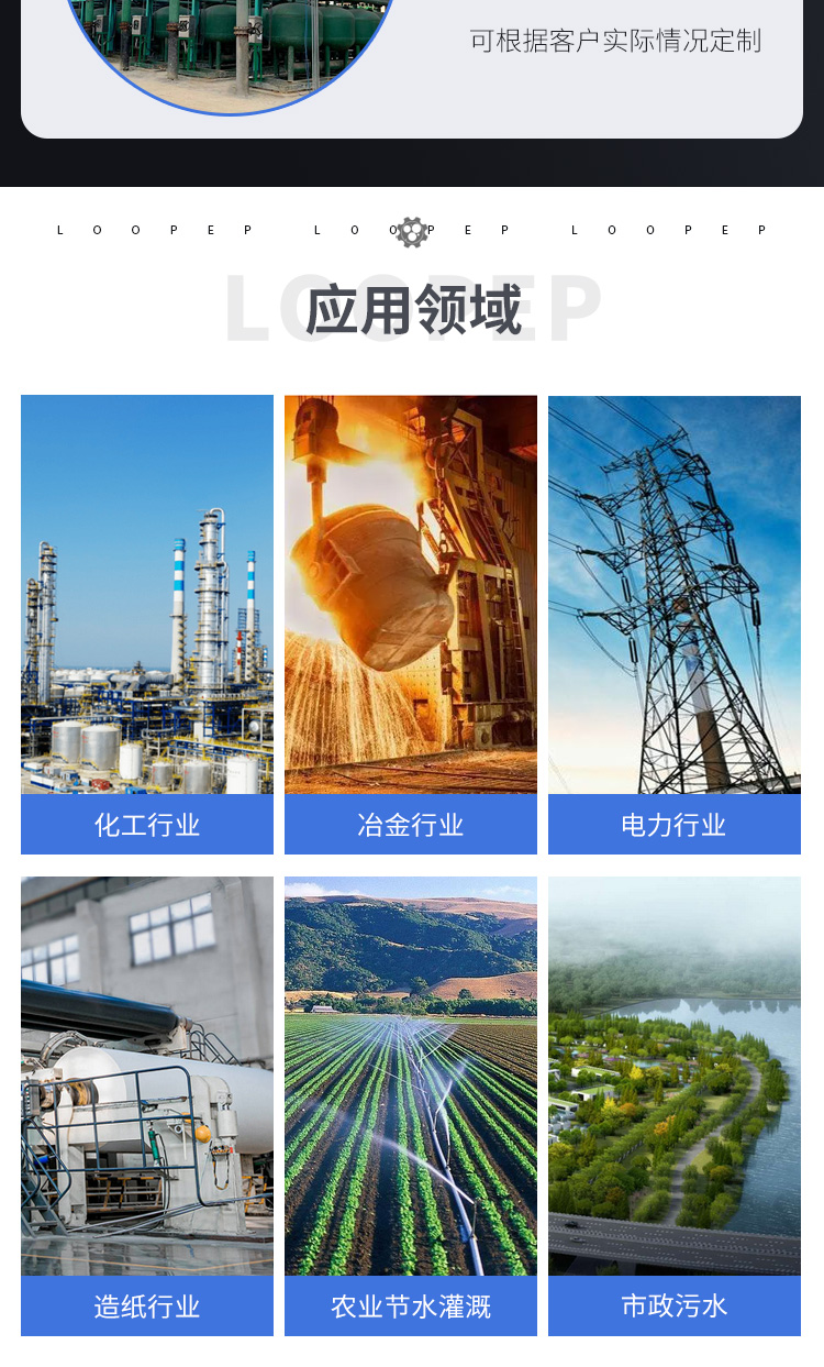● 多介質過濾器廣泛用于水處理的工藝中,可以單獨使用,但多數是做為水質深度處理(交換樹脂、電滲析、反滲透)的預過濾。